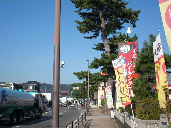 この辺りの国道沿いには非常に立派な巨木の松並木が所々に残されている。(右・左写真=14:35)