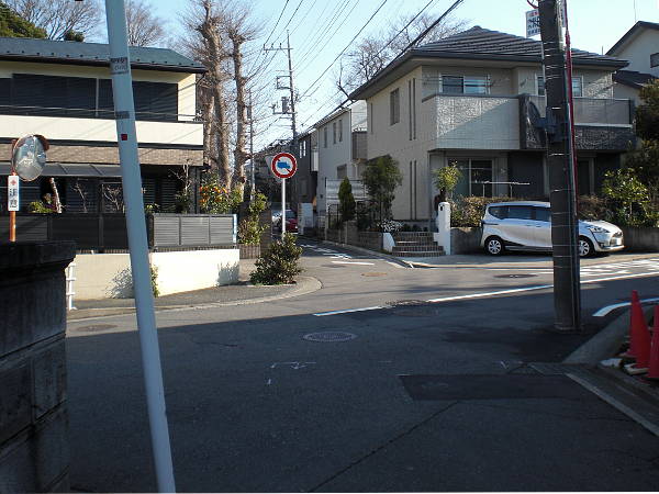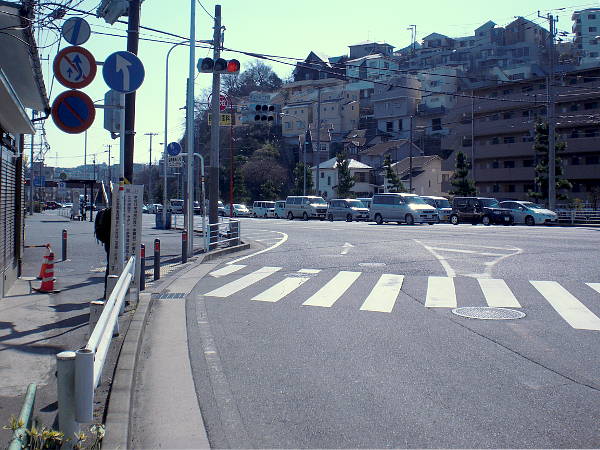 権太坂」を下り切ると丁字路に突き当たる(左・左写真=9:19)。ここを左に取る。右へ行くと国道一号線[元町橋交番前]であるが、合流はもう少し後になる。