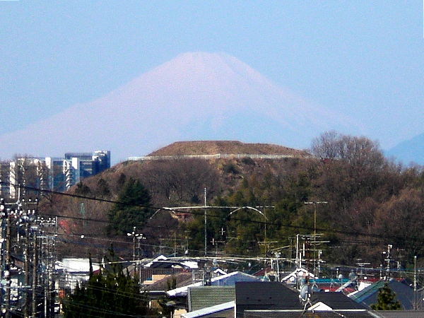 正しく左に進むと一服せよとばかりに富士を望む雄大な景色に遭遇した(右・右写真[4.5倍望遠]=9:05)。