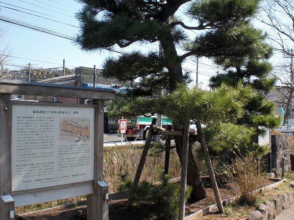 川沿いの歩道を進むと、松並木が再現された一角に来る。ここには「