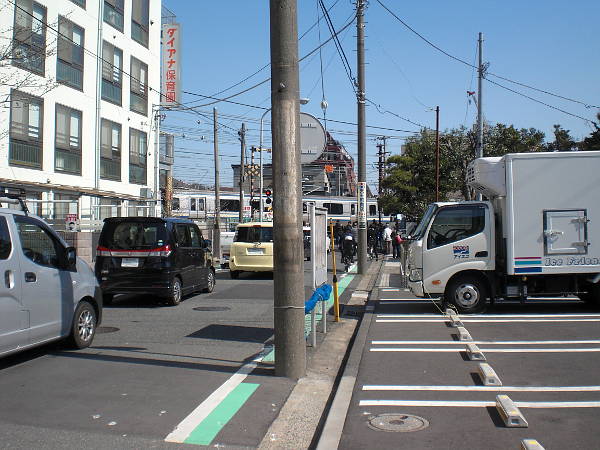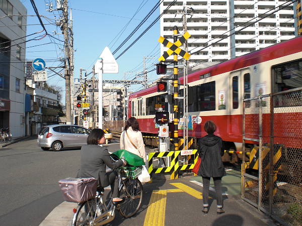しばらくすると、JR東海道本線の踏切に差し掛かる。交通量も多く、なかなかの開かずの踏切で人だまりが出来ている(左・左写真=9:54)。