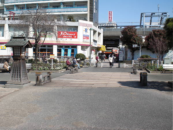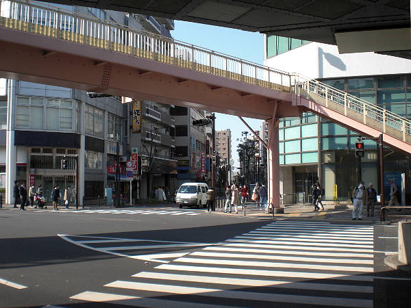 旧東海道らしい細道を進んで行くと京急鶴見駅に行き当たる。そのまま駅舎の端を左高架下へ回り込んだ所にある横断歩道を渡る(右・右写真=14:49)。