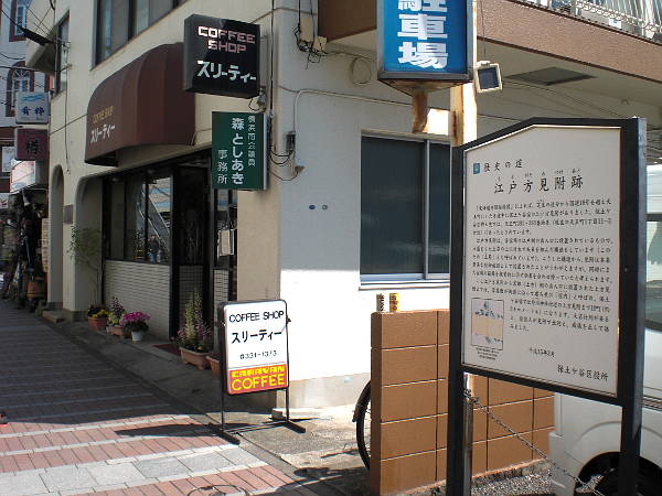 そのまま高架下をくぐると、向こうに続く旧東海道に出る。帷子川を渡って200m程の所に「江戸方見附跡」がある(右・右写真=10:32)。