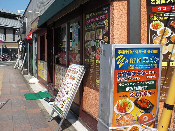 宮前商店街入口のインド料理店で昼食(左・左写真=11:45/15024歩/12:15)。この建物の裏手に「甚行寺」と言う寺が有り、フランス公使館が有ったとある。