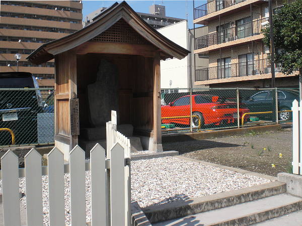 生麦事件の碑」が有ると調べてきたのだが、見つからないまましばらく来ると横浜環状北線の工事の為一時移設されていた(左・左写真=14:02)。