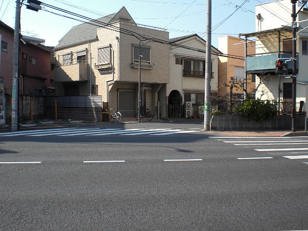 京急本線から離れ、[川崎警察署東側入口]という大きな交差点を過ぎ、二筋目の駐車場角に「