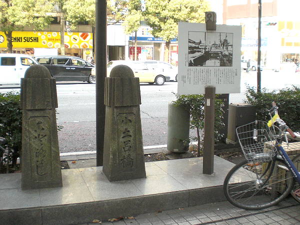現在は暗渠(新川通)となった新川堀に掛かっていた。