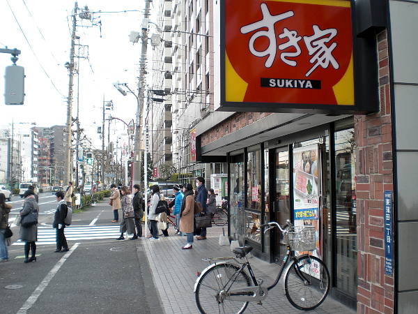 朝食無しのホテルだったので、すぐ見つけた「すき家で朝ごはん」のポップに惹かれて朝食(左・右写真=7:55-8:15/950歩)。