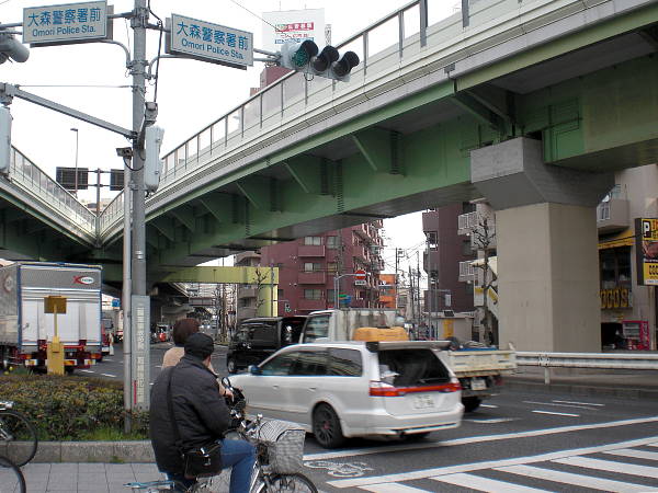 [大森警察署前]で15号線と合流する国道131号線を渡り、斜め右へ幹線道路から外れる(右・左写真=8:38)。