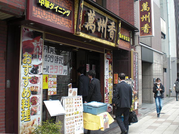 2ブロックほど行ったところに中華料理屋(萬州香)が有った(右・左写真=11:40~12:10/15752歩)。12時前に入れてラッキーだった。